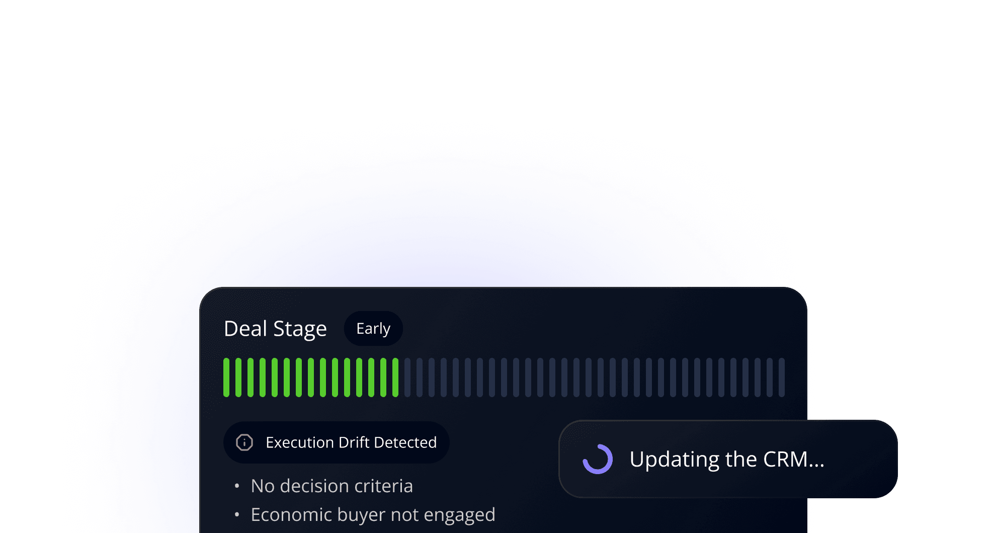 Overpath reads real deal behaviour, automatically updates the CRM, and surfaces deal risks mid-deal cycle. Catch execution drift before it costs you the deal.