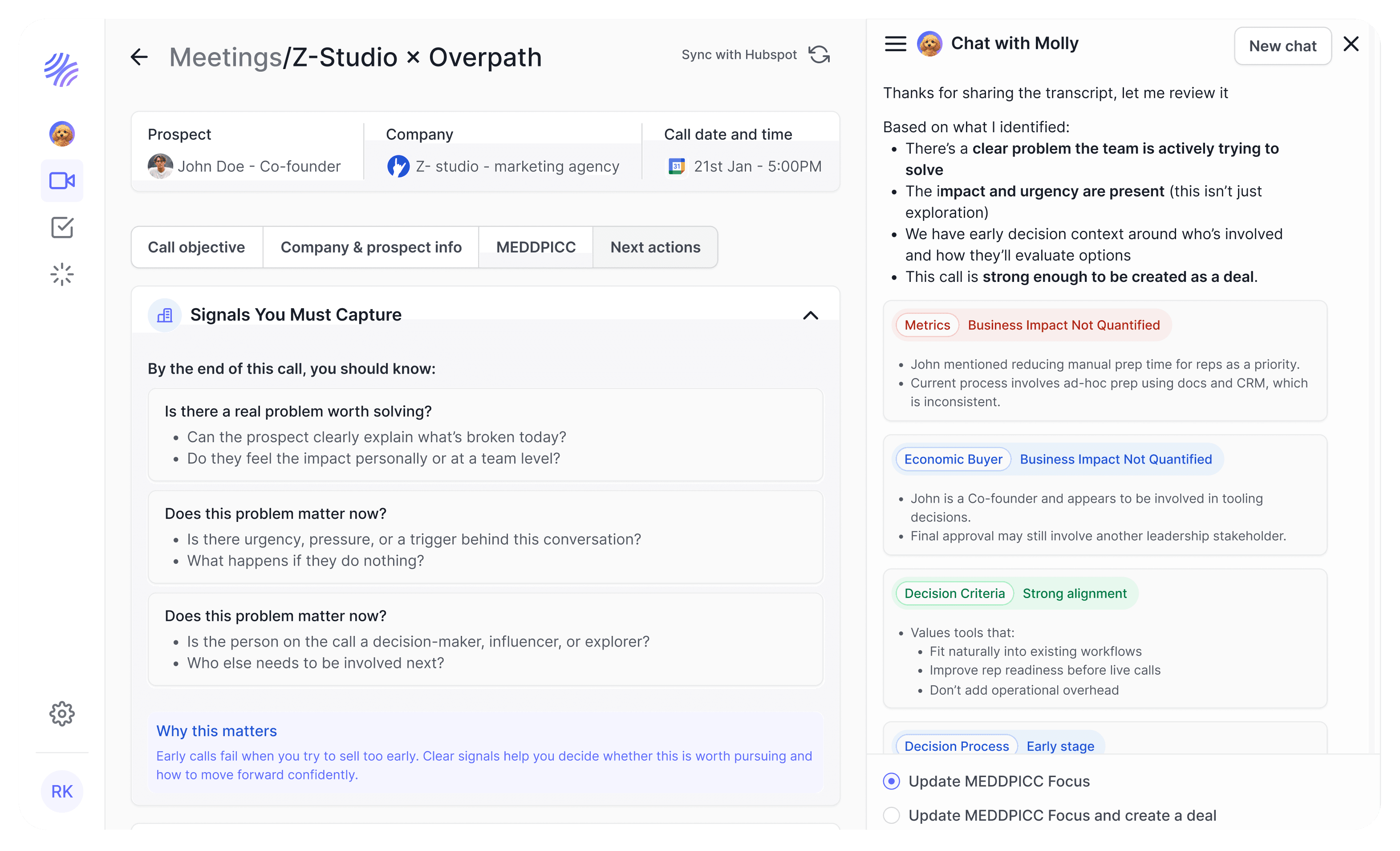 Overpath tells reps what to do next, before and after calls, and proactively supports execution through agent-driven GTM tasks.